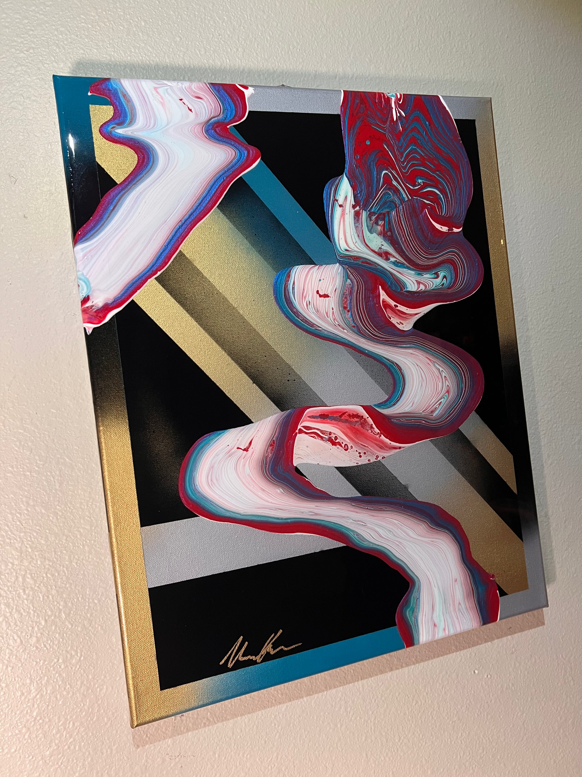 This piece of art work displays the fluidity of paint in 3D.